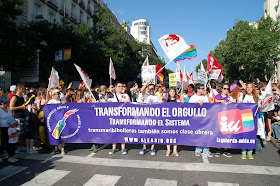 Por supuesto los medios de comunicación de encargan de mostrar la imagen más superficial del Orgullo. Probablemente no veremos en ningún medio el cortejo de Izquierda Unida, que este año ha hecho un esfuerzo especial por darle un carácter más reivindicativo al Orgullo. Su lema lo dejaba claro “Transformando el Orgullo, transformando el sistema”, y también sus consignas “TransMariBiBolleras, también son clase obrera”. Pretendemos así alejarnos de la imagen estereotipada de gay, hombre, de buena posición social, que gasta un gran parte de su tiempo y dinero cultivando su cuerpo en un gimnasio.